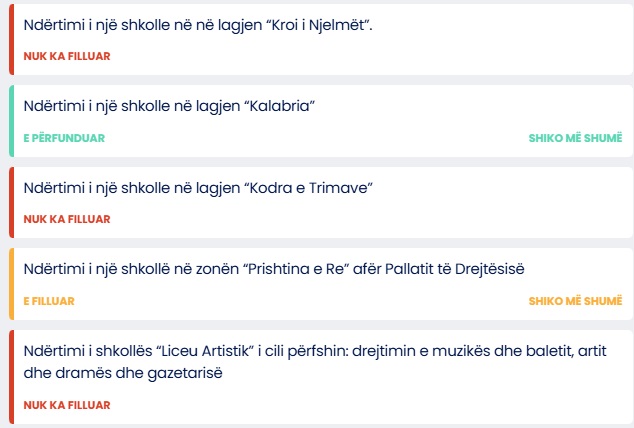 Ndërtimi i shkollës në lagjen “Kroi i njelmët”, ndërtimi i shkollës në lagjen “Kodra e Trimave” dhe shkolla “Liceu Artistik” i cili përfshin: drejtimin e muzikës dhe baletit, artit dhe dramës dhe gazetarisë kanë mbetur premtime në letër e të cilat Pëparim Rama për këto 4 vite as nuk i ka filluar se lëre më t’i realizojë.