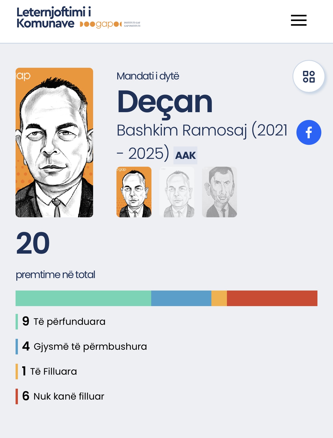 Kryetari i Deçanir në vitin 2021 kishte bërë gjithsej 20 premtime në programin e tij elektoral. Sipas një hulumtimi të publikuar nga Instituti GAP, nga këto premtime vetëm 9 janë realizuar plotësisht, 4 janë në gjysmë realizimi, 1 kanë filluar të implementohen, ndërsa 6 premtime nuk kanë nisur fare.