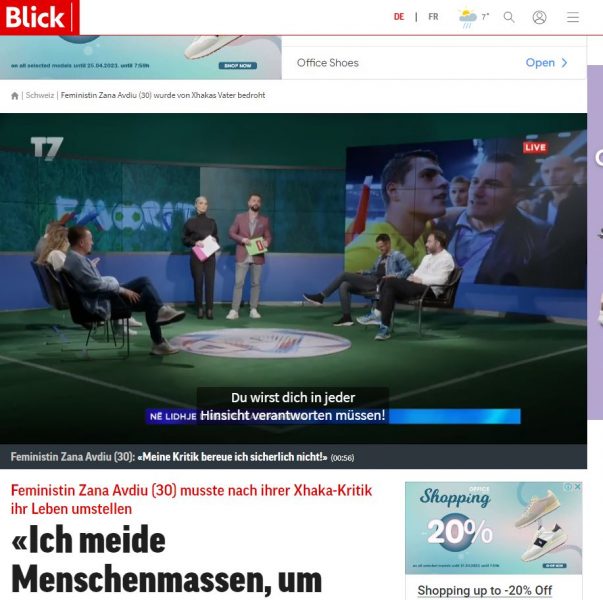 Aktivistja kosovare, e cila veprimin e Granit Xhakës, i cili e kishte kapur organin gjenital në ndeshje me Serbinë në Botëror, e kishte konsideruar një akt prej rrugaçi, ka folur për mediumin e madh zviceran, “Blick”, përcjell “Gazeta Express”.