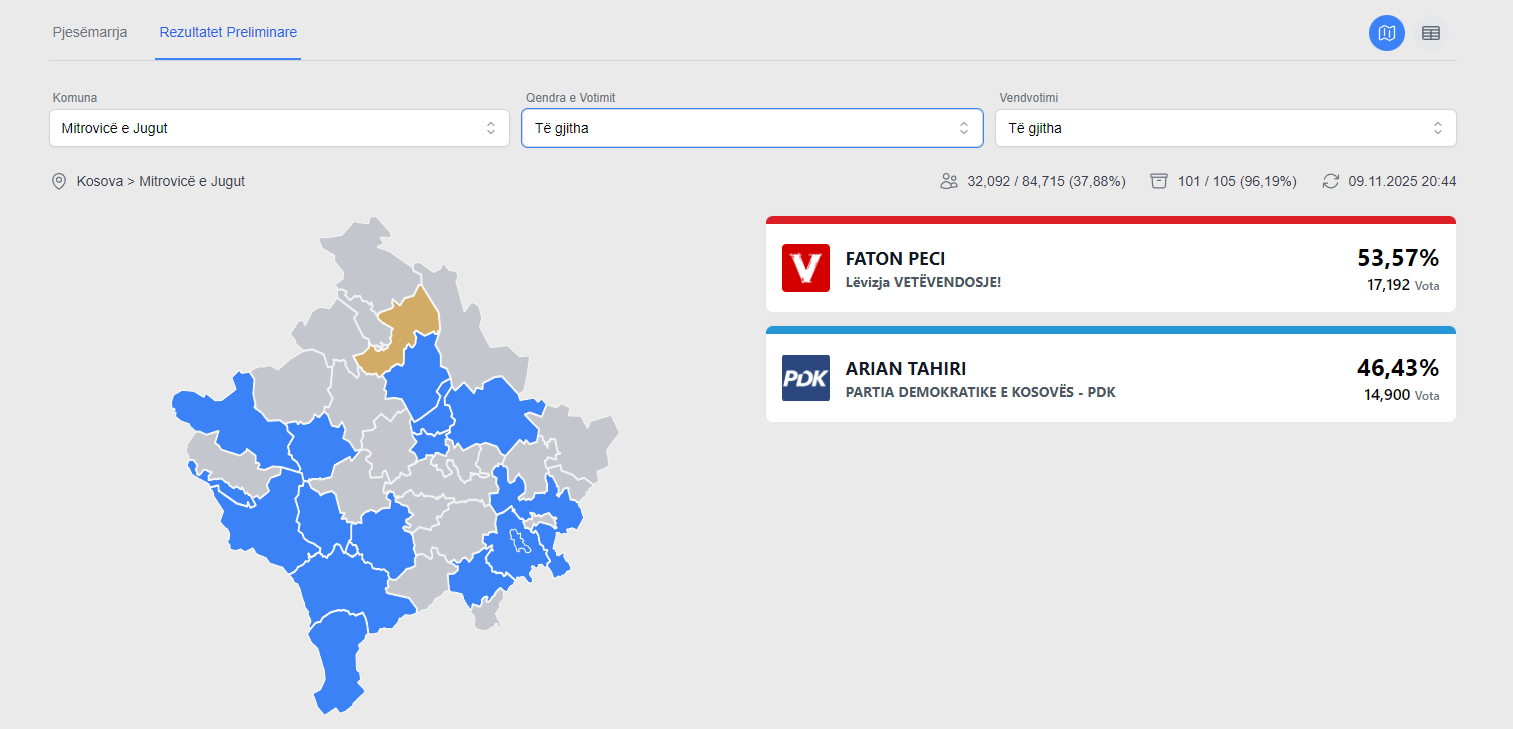 Numërimi i votave në Mitrovicën e Jugut po shkon drejt fundit, ku sipas krejt përllogaritjeve Faton Peci është fitues i garës dhe kryetar i ri i Mitrovicës.