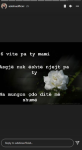 “Gjashtë vite pa ty mami. Asgjë nuk është e njejtë pa ty, na mungon çdo ditë e më shumë,” shkroi fjalët prekëse Adelina përmes një postimi.