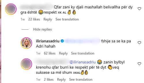 Ky koment shkaktoi të qeshura, dhe nuk mungoi as reagimi me humor i Ilirianës, e cila iu përgjigj me sportivitet.