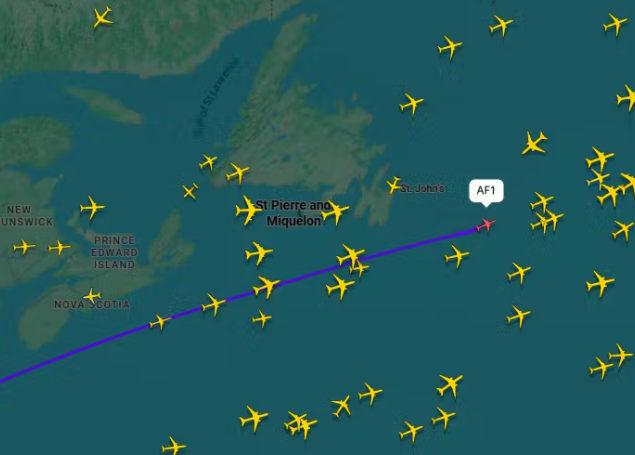 Trump është tashmë në rrugë për në Zvicër. Fluturimi ishte për një kohë të shkurtër më i ndjekuri në botë në Flightradar24.com.