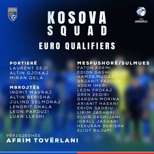 Selektori i kombëtares U21 të Kosovës, Afrim Tovërlani ka publikuar listën e lojtarëve të zgjedhur për ndeshjet e nëntorit.