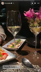 Ajo sonte në “InstaStory” publikoi një foto nga një darkë ku shihet dora e një mashkulli.