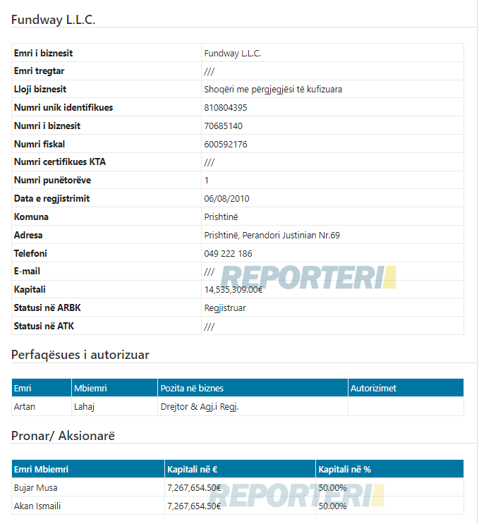 Kapitali i regjistruar në ARBK i kësaj kompanie del të jetë hiq më pak se 14,535,309.00 Euro. Nga mbi 7.2 milionë Euro kapital të ndarë mes dy pronarëve Ismaili dhe Musa.