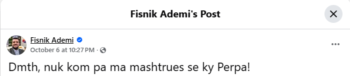 “Dmth, nuk kom pa ma mashtrues se ky Perpa!”, ka shkruar ai në Facebook.