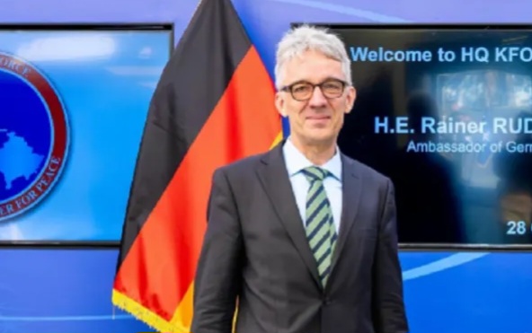 Ambasadori gjerman në Kosovë, Rainer Rudolph, ka mirëpritur gjetjen e pajtimit për mënyrën e zbatimit të ligjeve për të huajt dhe automjetet që u njoftua nga emisari i BE-së për dialogun Kosovë-Serbi, Peter Sorensen dhe kryeministri Albin Kurti, pas takimit të sotëm në mëngjes