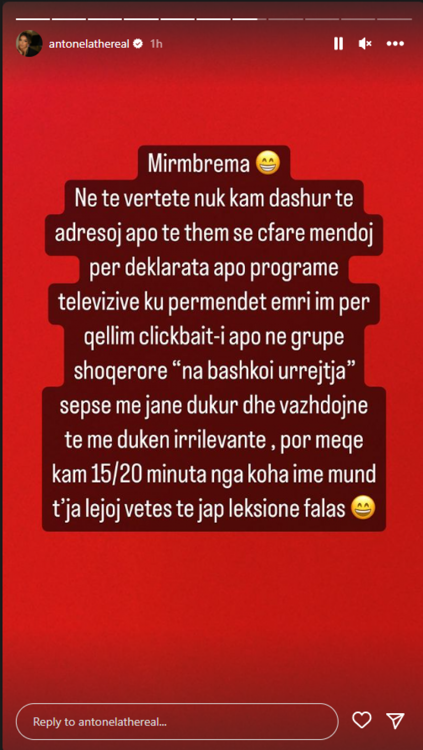 Këtyre deklaratave ju ka përgjigjur Antonela përmes disa ‘Instastory’.