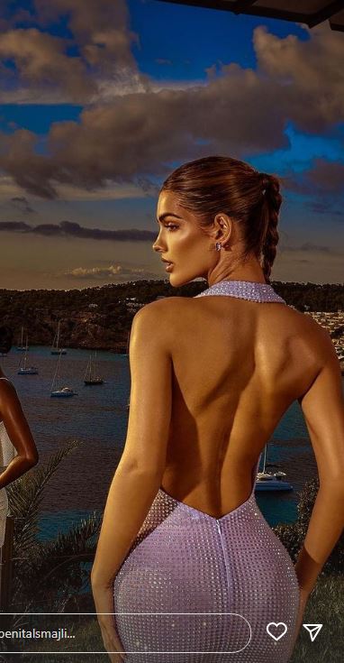 Ajo ka veshur një fustan ngjyrë ‘’pink’’, me shpinë të hapur, ku shihet trupi i saj i tonifikuar.