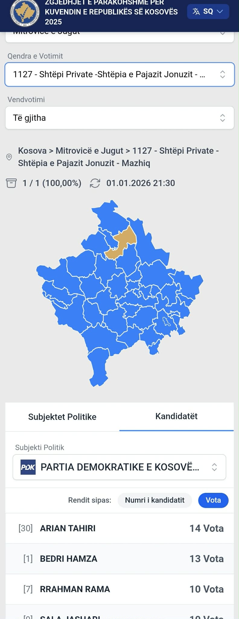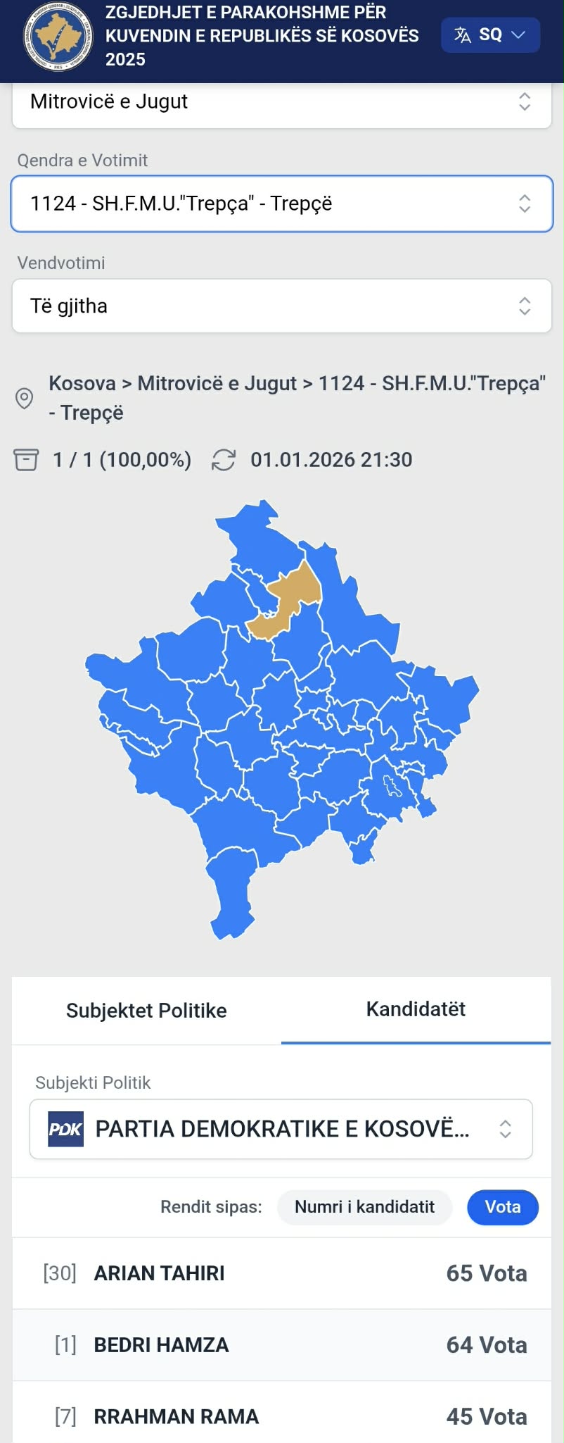 Ajo çka vërehet është se Arian Tahiri ka marr mbështetje të fuqishme në Mitrovicë, ku në 5 vendvotime ka marrë vota edhe më shumë se Bedri Hamza.