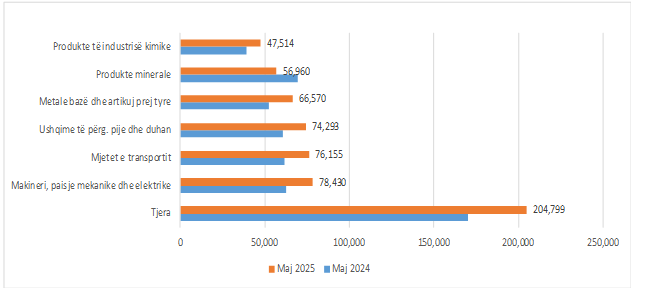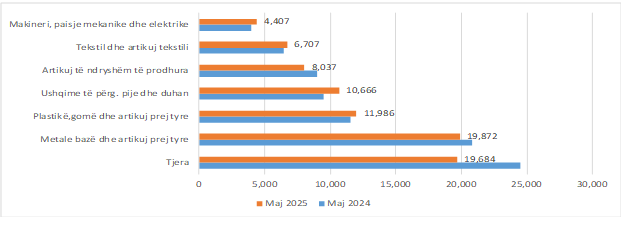 Agjencia e Statistikave të Kosovës (ASK) ka publikuar të dhënat lidhur me rrjedhat e eksportit dhe importit për muajin maj 2025.