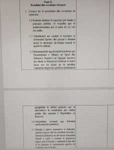 “Ndalesa e njëjtë sikurse në paragrafin gjashtë do të zbatohet në rastet kur federatat sportive në organet e tyre drejtuese të përcaktuara me statut, lejojnë që përgjegjësitë drejtuese t’i ushtrojnë personat e akuzuar për vepra penale të dënueshme prej së paku një vjet burg. Personat e akuzuar për vepra penale, sikurse në këtë paragraf, duhet të pezullojnë aktivitetin e tyre deri në përfundimin e procedurës penale ndaj tyre”, thuhet në pikën 7 të nenit 6 të Udhëzimi që e posedon Gazeta Metro.