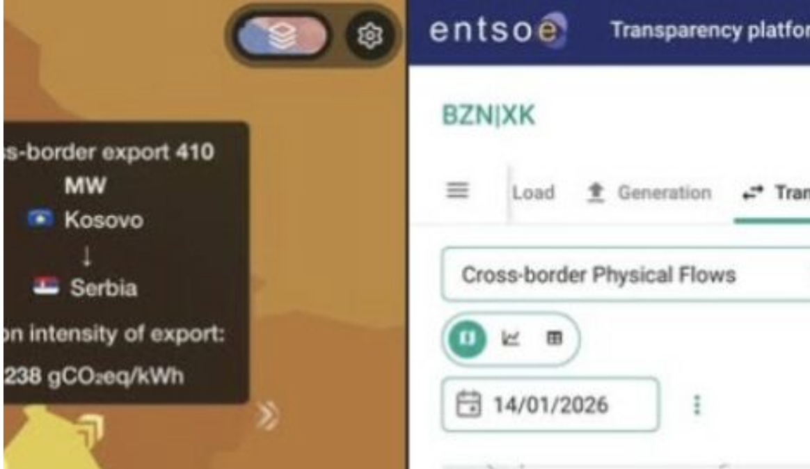 Sipas platformave që ka publikuar Azemi, Kosova më 14 janar ka eksportuar 440 megavat energji elektrike në Serbi.