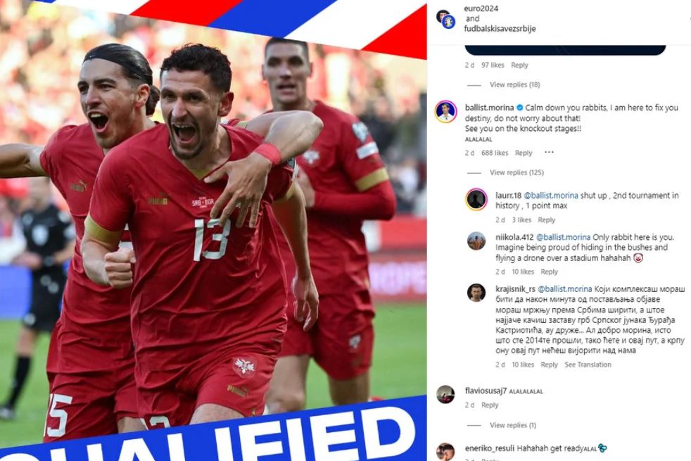 Në postimin e UEFA-s ku njoftohet për kualifikimin e Serbisë, Ballist Morina ka shkruar një koment që ka acaruar serbët.