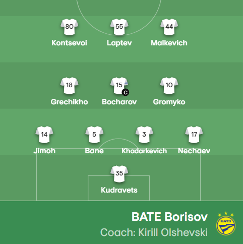 Ballkani-BATE Borisov, publikohen formacionet zyrtare