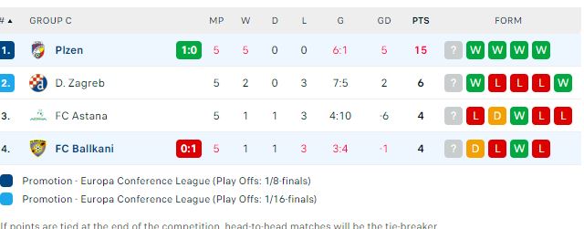 Me këtë humbje Ballkani mbetet në vendin e fundit të grupit C në Conference League me 4 pikë aq sa ka edhe Astana në vendin e 3’të.