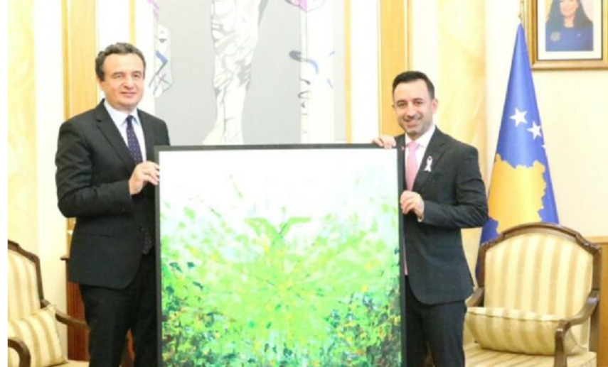 Ndërkaq sot në vizitë te Basha ka qenë kryeministri në detyrë, Albin Kurti që i shkoi me një pikturë dhuratë.