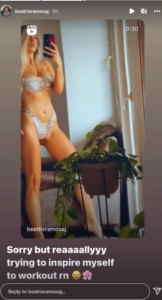 Në “InstaStory” ajo ka publikuar së fundmi një video të realizuar më parë, ku thotë se se dëshiron që ta inspirojë veten që t’i rikthehet ushtrimeve.