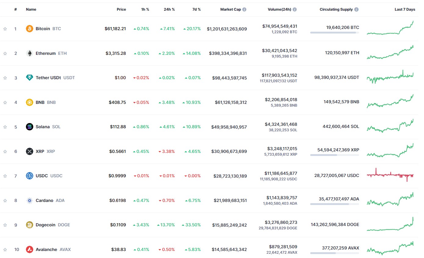 Çmimi i kriptomonedhës kryesore ka arritur 63968 mijë dollarë për herë të parë që nga nëntori i vitit 2021.
