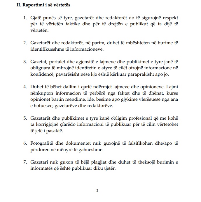 Konkretisht kapitullin 2 të Kodit të Mediave të Shkruara e gjeni më poshtë: