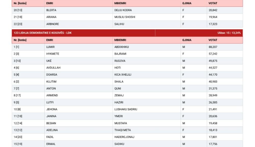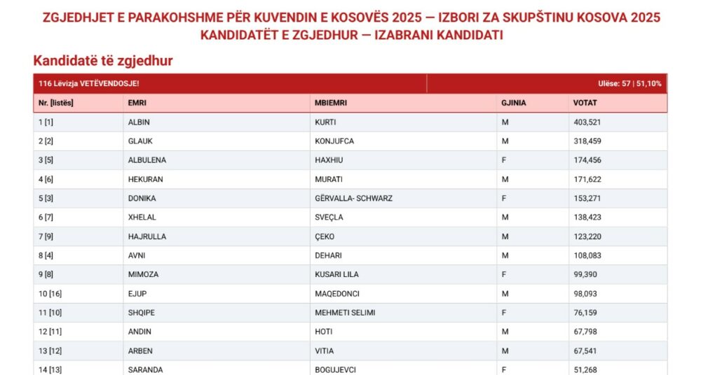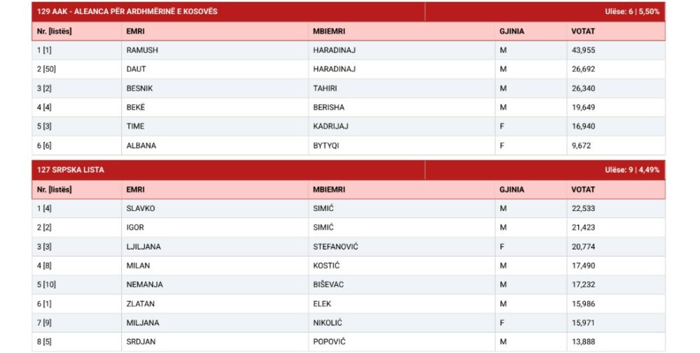 Më poshtë gjeni emrat e të 120 deputetëve që kanë siguruar ulëse: