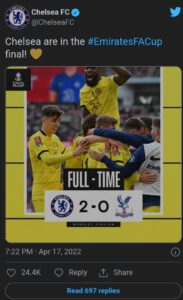 Kështu, me këtë fitore Chelsea shkon në finale të FA Cup, ku atje takon Liverpoolin që dje mposhti Man City me rezultatin final në 2:3.