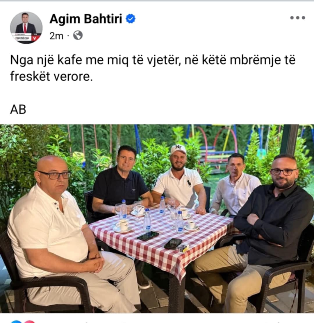 “Nga një kafe me miq të vjetër, në këtë mbrëmje të freskët verore”, ka shkruar Bahtiri krahas fotos.