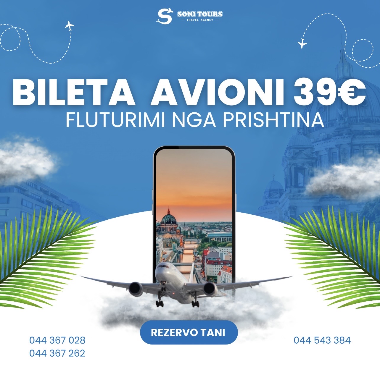 “Soni Tours” bën të ditur se çmimi i biletave niset nga 39 euro njëdrejtimëshe në data të caktuara.