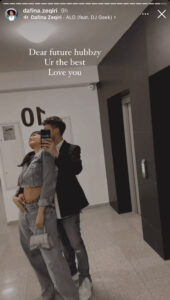 Dafina ka postuar një fotografi ku shihet bashkë me DJ Geek ndërsa ka shkruar: “I dashur bashkëshorti im i ardhshëm, je më i miri. Të dua”.
