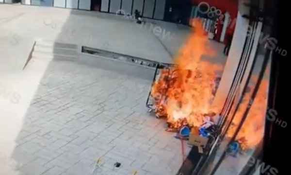 Sipas videos, flakët kanë nisur nga mbeturinat e një marketi të vendosur në përdhes të pallatit, duke u përhapur me shpejtësi.
