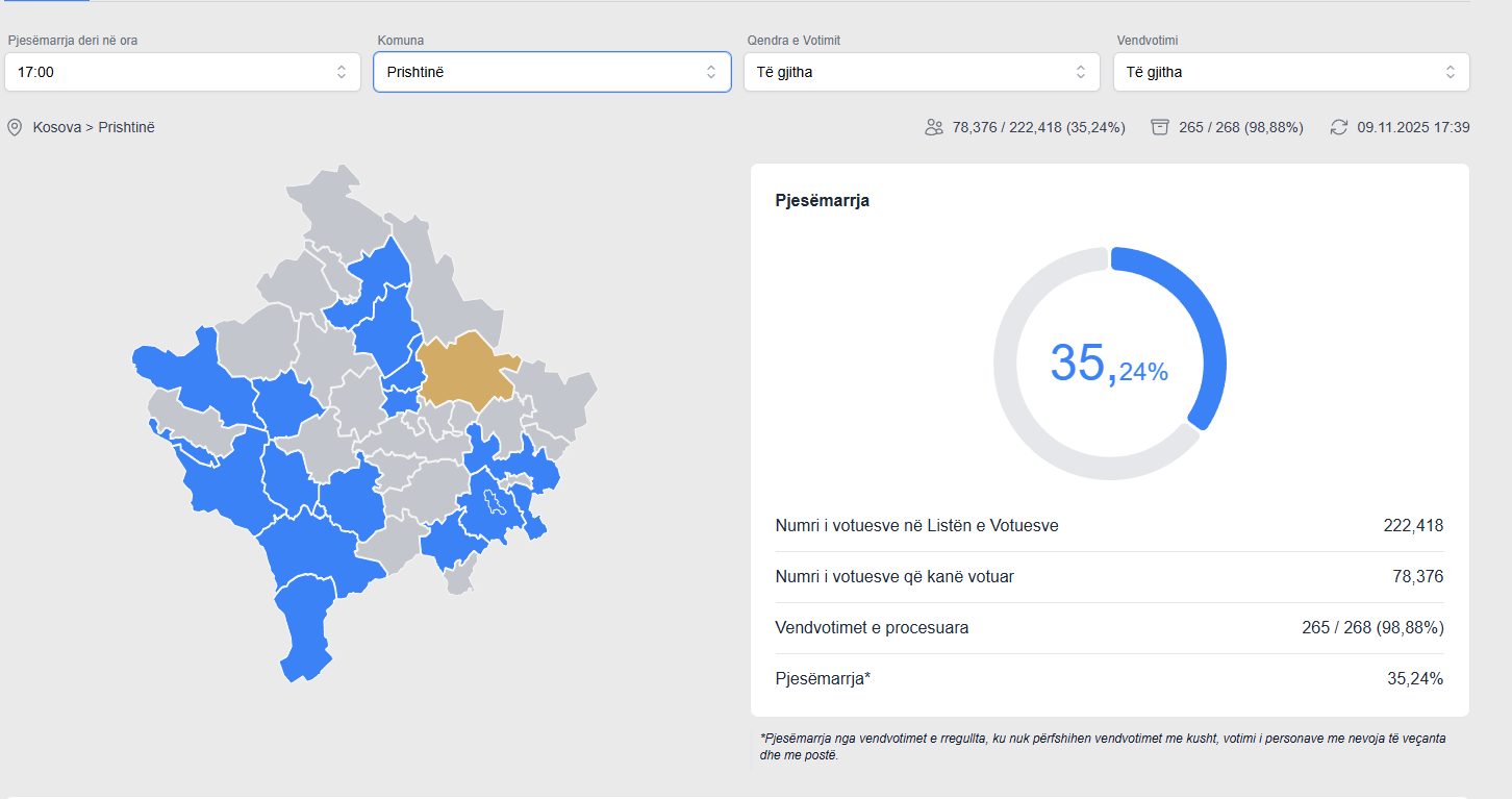 Ndërsa në zgjedhjet e 12 tetorit, deri në orën 17:00 në Prishtinë kanë dal numër më i madh i votuesve. 38.62 për qind.