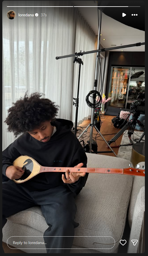Në foton e publikuar shihet i dashuri i saj, Karim Adeyemi, duke luajtur çifteli, instrument tradicional shqiptar.