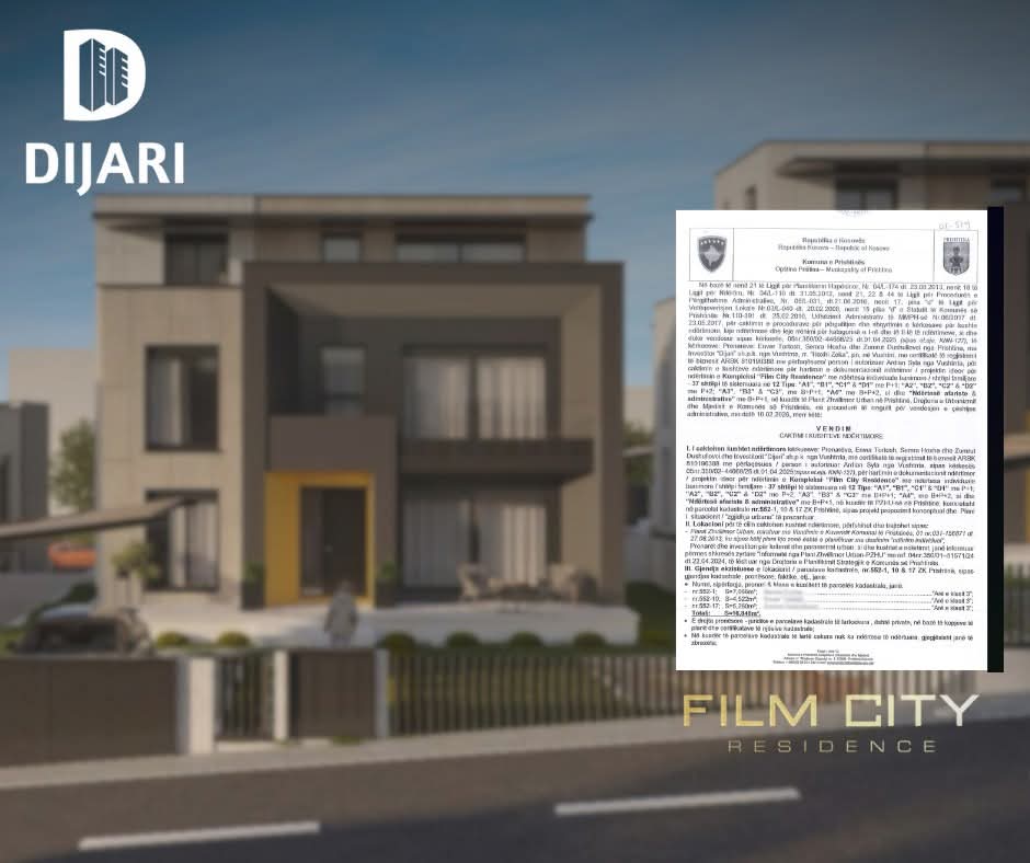 Kompania e shquar ndërtimore ‘Dijari’ Sh.P.K. është pajisur me kushte ndërtimore nga Komuna e Prishtinës për projektin “Film City Residence’.