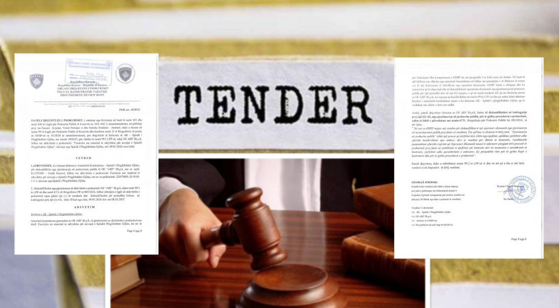 Organi Shqyrtues i Prokurimit (OSHP) ka marrë vendim për diskualifikimin për një vit nga të gjitha aktivitetet e prokurimit publik të operatorit ekonomik “ARF” Sh.p.k., pas një rasti që lidhet me një tender të Spitalit të Përgjithshëm në Gjilan.