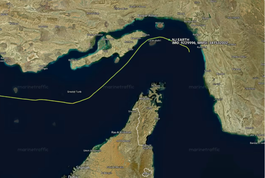 Anijet NJ Earth dhe Daytona Beach ndoqën rrugën pranë Ishullit Larak të Iranit, një checkpoint i Gardës Revolucionare për kontrollin e kalimit.