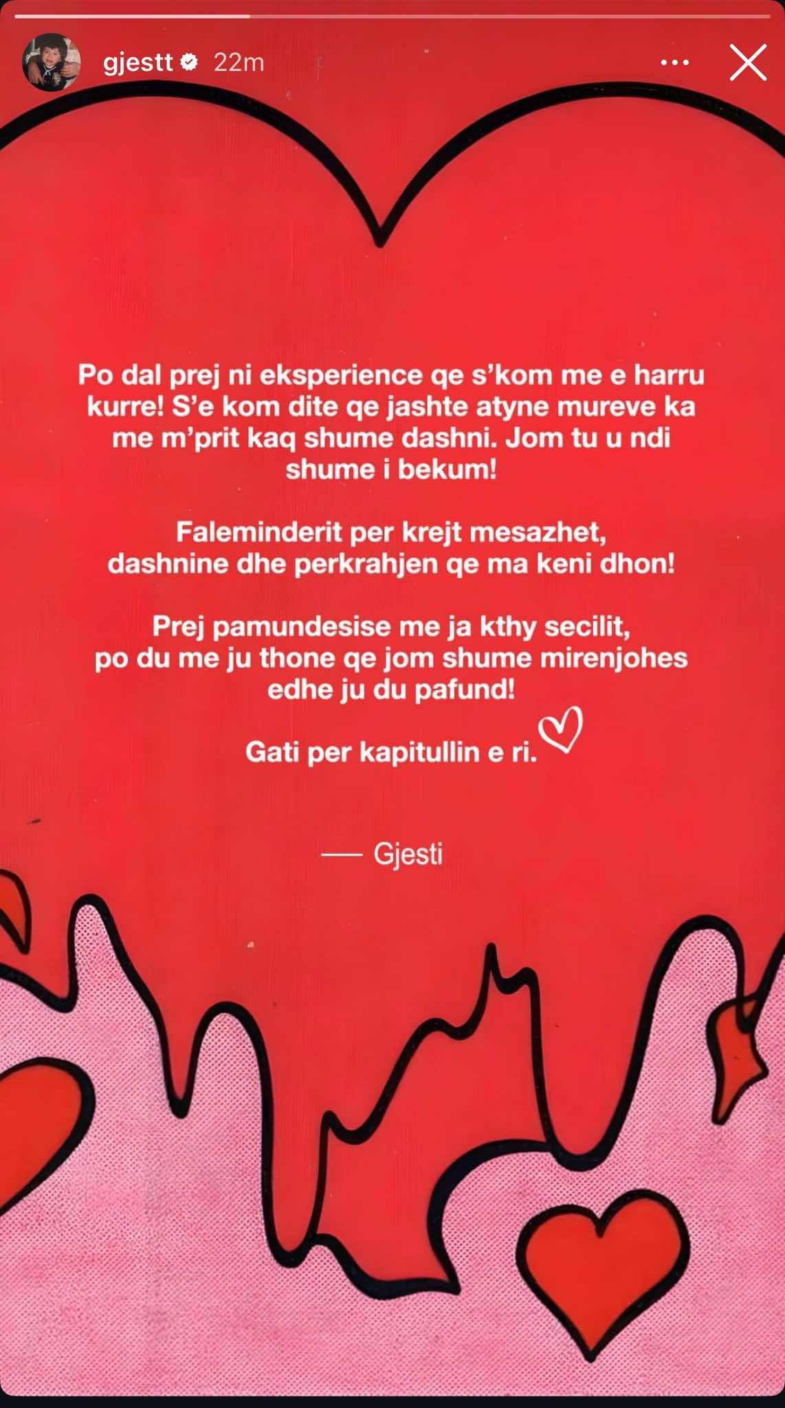 Gjesti ka shprehur falënderime të sinqerta për të gjithë ata që e mbështetën dhe e donin, duke u ndjerë i bekuar për dashurinë që mori.