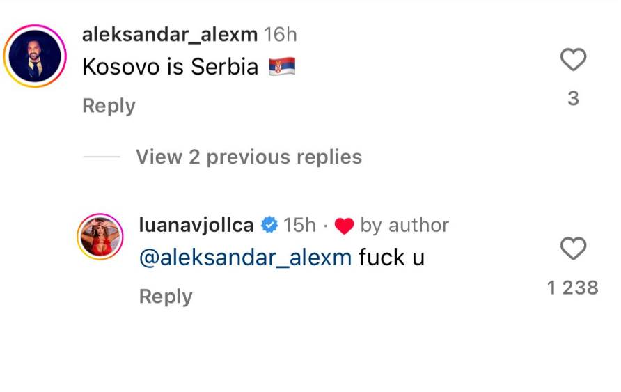E quajti Kosovën Serbi, Luana Vjollca reagon ashpër ndaj komentuesit provokativ