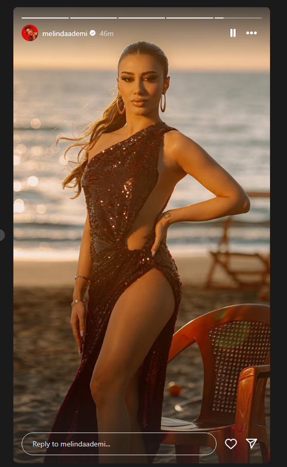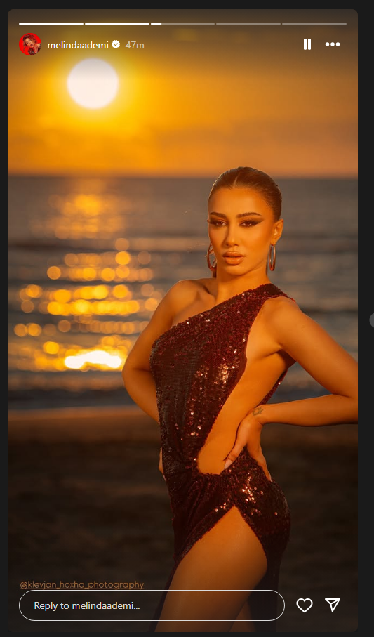 Këngëtarja e njohur Melinda Ademi ka ndarë një foto të re mahnitëse në Instagram, ku shihet duke pozuar në një mbrëmje të artë buzë detit.