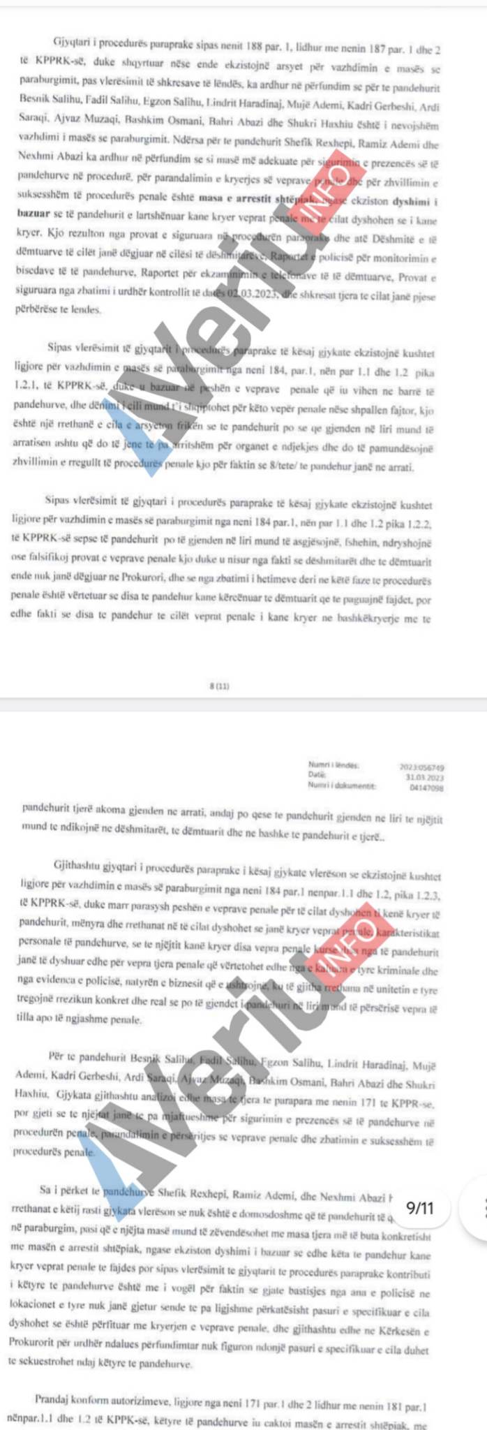 Veriu.info ka siguruar ekskluzivisht aktvendimin e gjyqtarit të procedurës paraprake, Sahit Krasniqi, me të cilin iu vazhdohet masa e paraburgimit edhe për dy muaj këtyre të pandehurve: