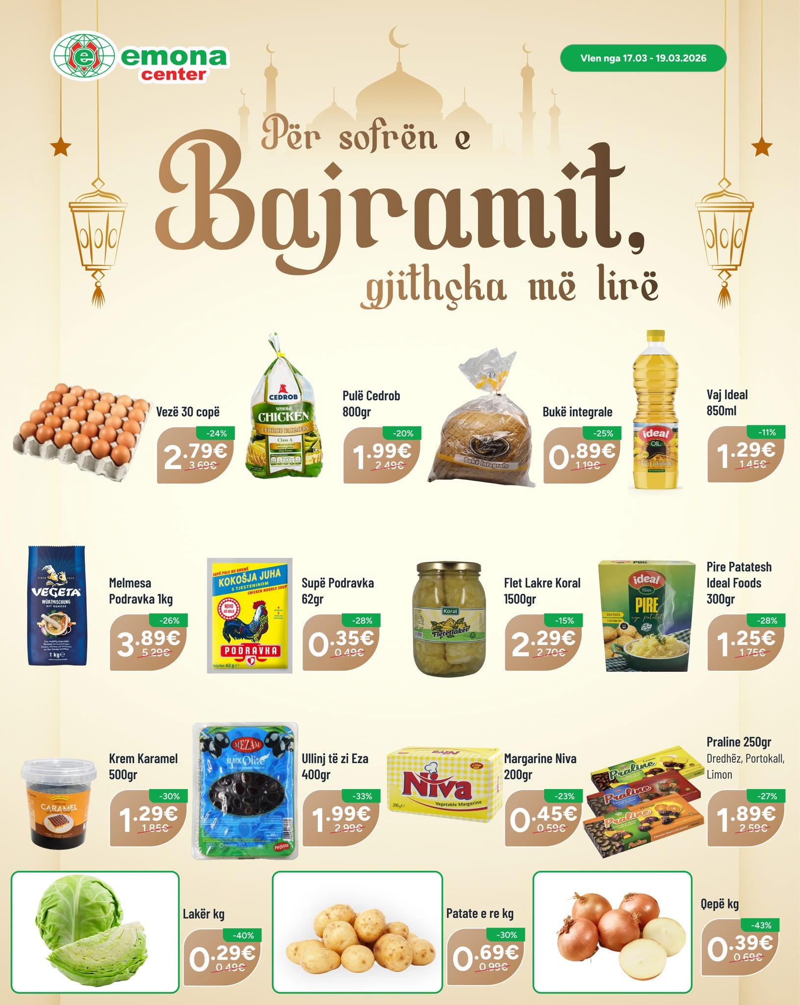 Rrjeti i marketeve “Emona Center” ka sjellur një superofertë speciale për festën e Bajramit në shumicën e produkteve për familjen tuaj që kjo festë të ketë bollëk në sofrën tuaj, raporton Gazeta Online Veriu.info.