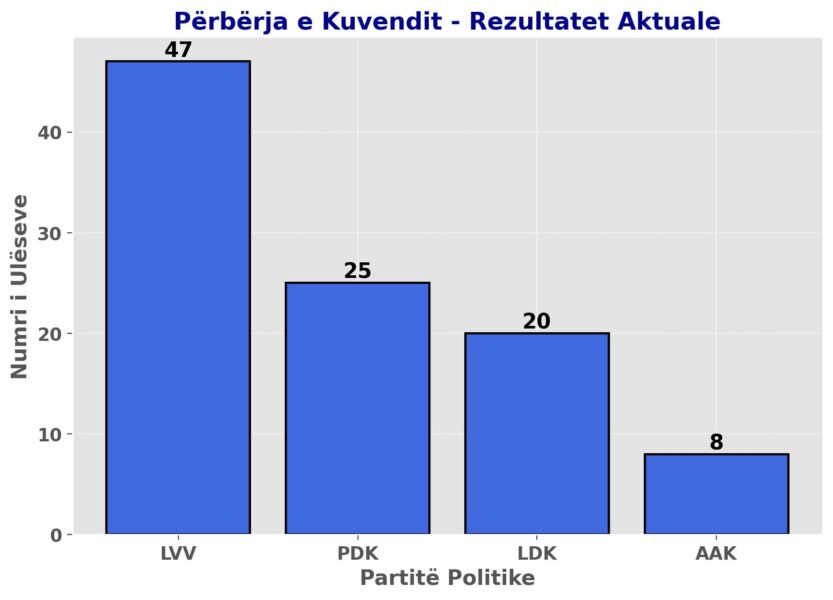 Ende s’ka rezultate finale, sa deputetë kanë siguruar VV, PDK, LDK, AAK-NISMA në bazë të të dhënave të deritashme