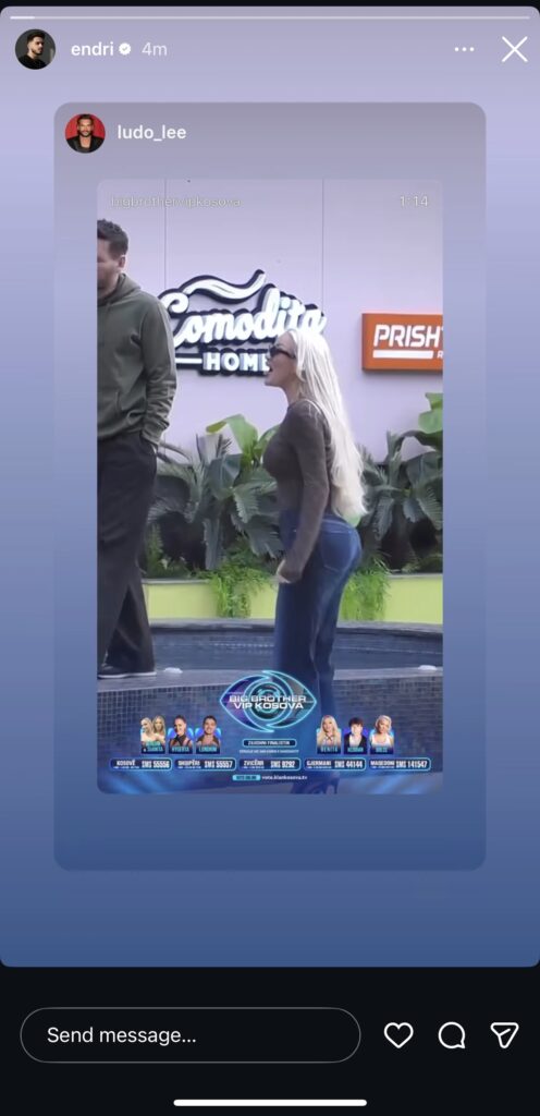 Në ‘Instastory’ ka ripostuar momentin kur shihet Benita e entuziazmuar teksa shijon ritmin e këngës.