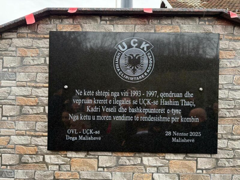 Në “Ditën e Forcës” dhe në prag të 28 Nëntorit u zbulua sot pllaka përkujtimore në shtëpinë ku gjatë viteve 1993-1997 vepruan Hashim Thaçi dhe Kadri Veseli, një nga qendrat e vendimmarrjes që i hapi rrugë organizimit të rezistencës dhe më vonë lirisë së vendit.