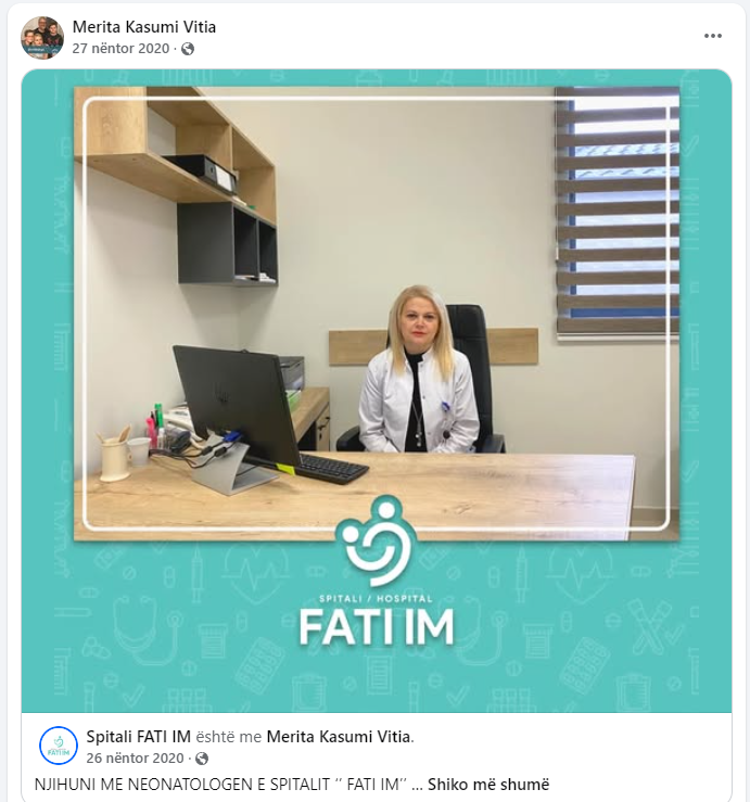 Merita Vitia kishte punuar edhe vite më parë në këtë spital privat, ku shihet edhe nga postimet në rrjete sociale të saj dhe të spitalit.