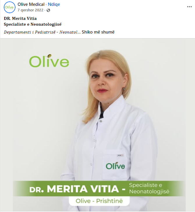 Me një kërkim në faqen e spitalit special “Fati Im”, Veriu.info ka gjetur se aty punon specialistja e neonatologjisë, Merita Vitia, që është gruaja e ministrit në detyrë të Ministrisë së Shëndetësisë, Arben Vitia.