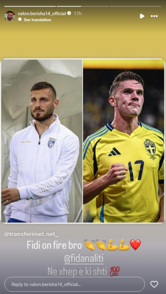 “Fidi ishe i zjarrtë vëlla, në xhep e ki shti”, ka shkruar shkurtimisht mesfushori dardan në një “Instastory”.