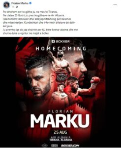 Florian Marku e ka konfirmuar rikthimin e madh në ringun e boksit.