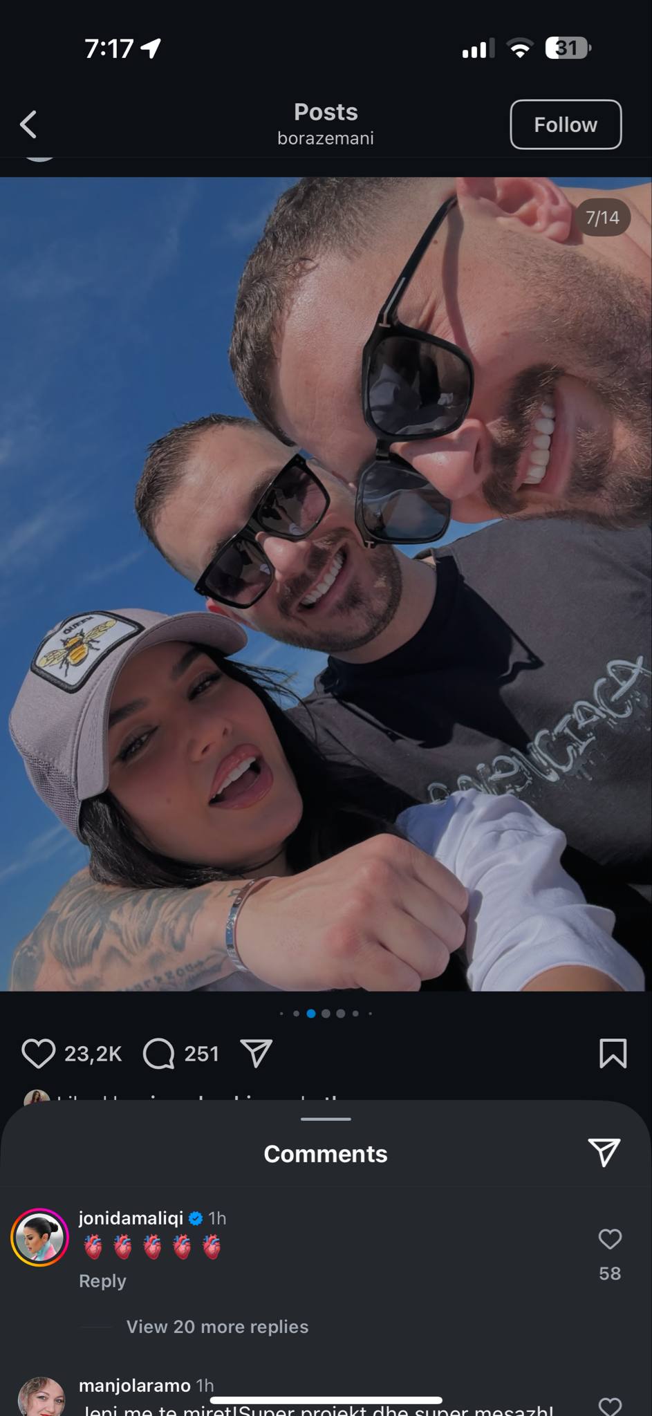 Ajo çfarë bie në sy më shumë është komeni i Jonidës, e cila i kishte dërguar 5 zemra, shkruan IndeksOnline.
