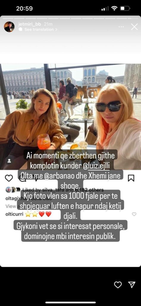 Megjithatë ka disa prej tyre që dyshojnë, jo në Luizin, por në produksionin se po i bën “komplot” këngëtarit dhe se po e luftojnë atë, shkruan Reporteri.net. Ish-fituesi i Big Brother Albania 3, Jetmir Salaj, ka publikuar një foto ku thotë se Olta është shoqe me Xhemi Shehu dhe kjo e fundit me Arbana Osmanin. “Gjykoni vet sa interesat personale dominojnë mbi interesin publik”, ka shkruar ndër të tjera ai.